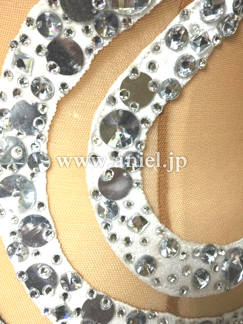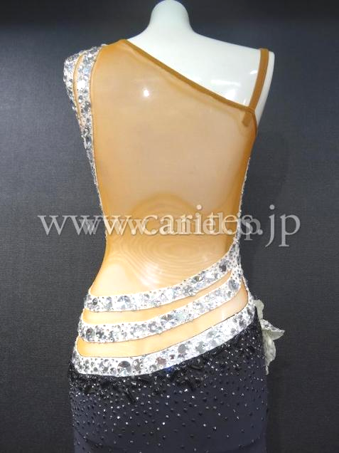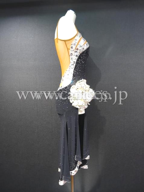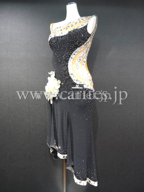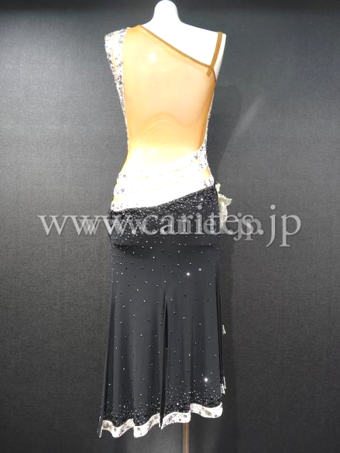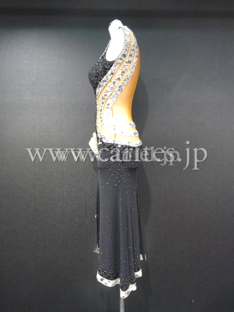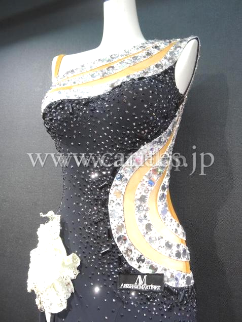 黒にスパンコールやストーンでキラキラに装飾された白のラインが目立つドレスです。