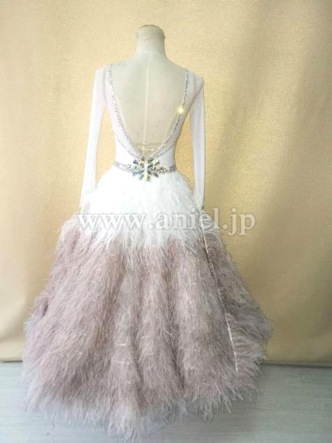 スカートに羽根をたっぷり使用し、存在感があるドレス。