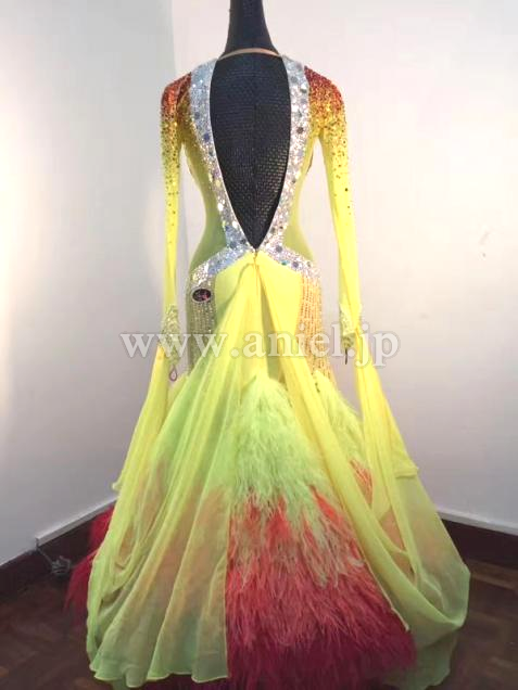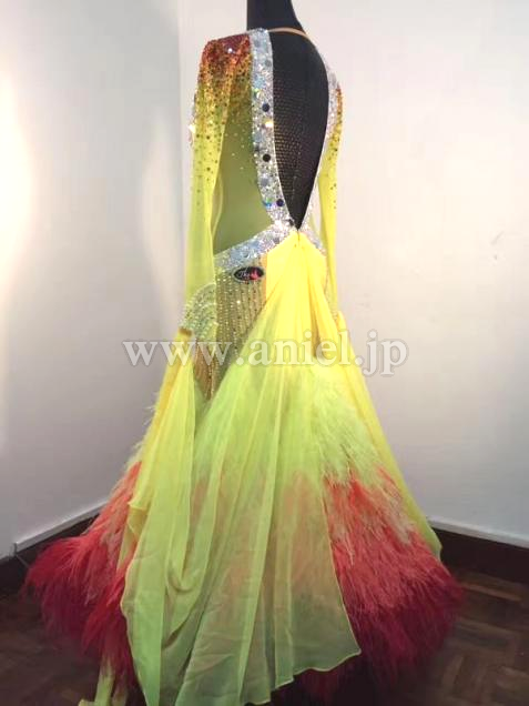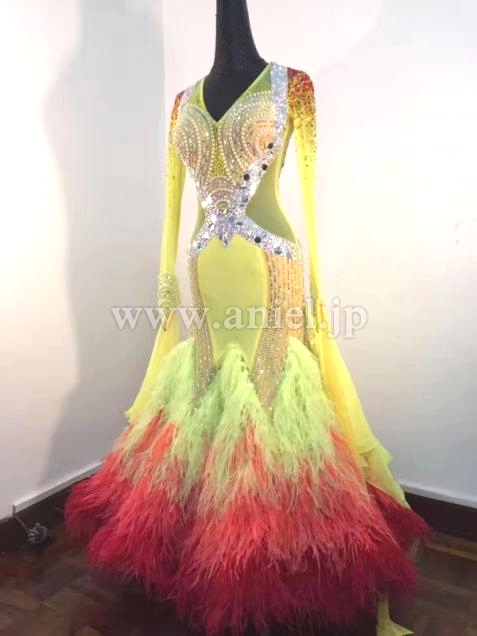スカートにはオーストリッチの羽根を使用し、フロアで舞います。