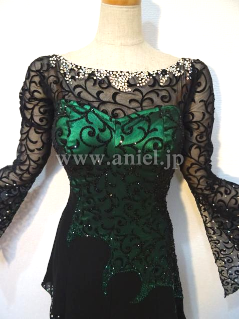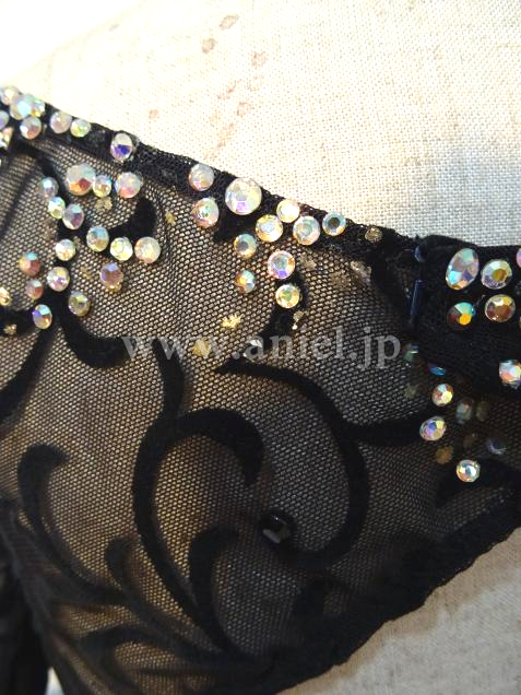 柄模様の入った、ブラックのシースルー生地を全体に使用しています。
