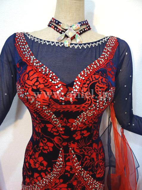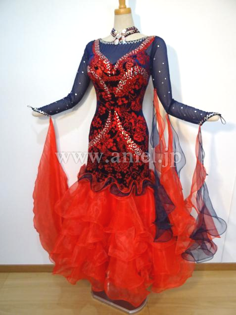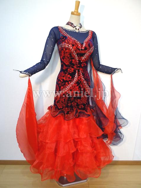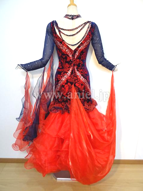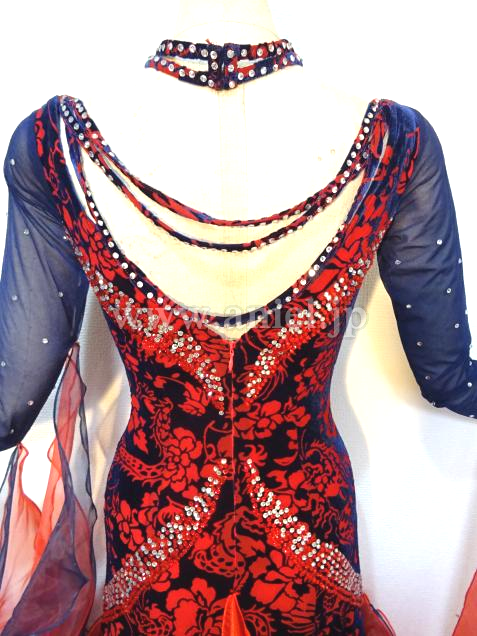 赤のスカ-トでインパクトがあります。ボディ部分はベルベット素材を使用しています。
