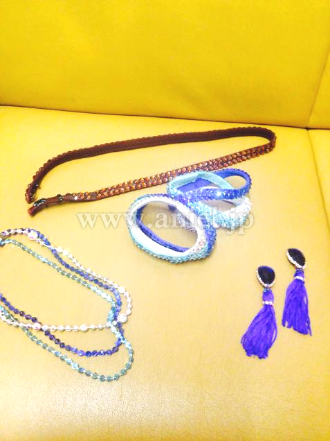 ネックレス、イヤリング、ウエストベルト、バングルが付いています。