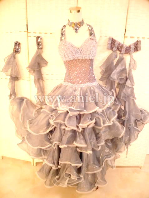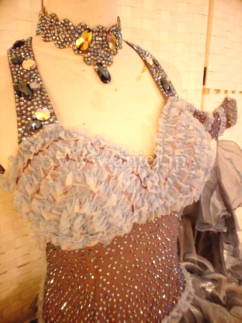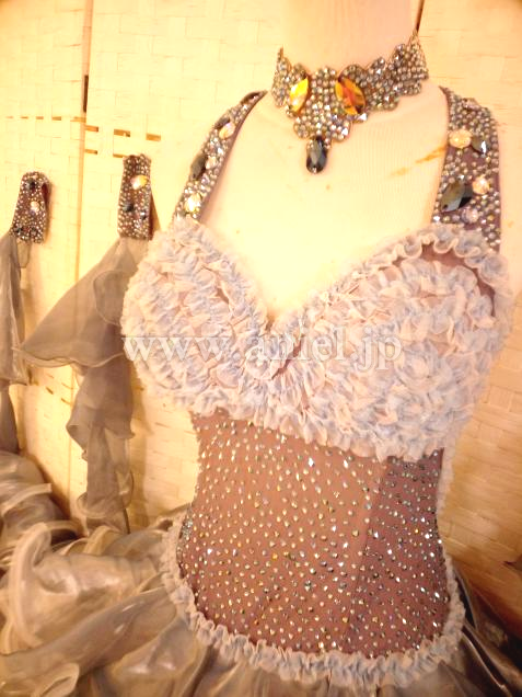 ボディにたっぷりのスワロフスキーストーンが施されたドレスです。