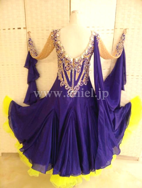 ブルーベリーカラーのモチーフを使用したドレス。