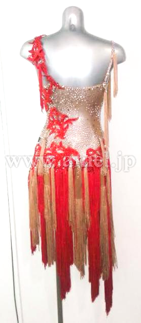 ベージュのボディに赤のモチーフレース、ストーンがあしらわれたセクシーなドレスです。
