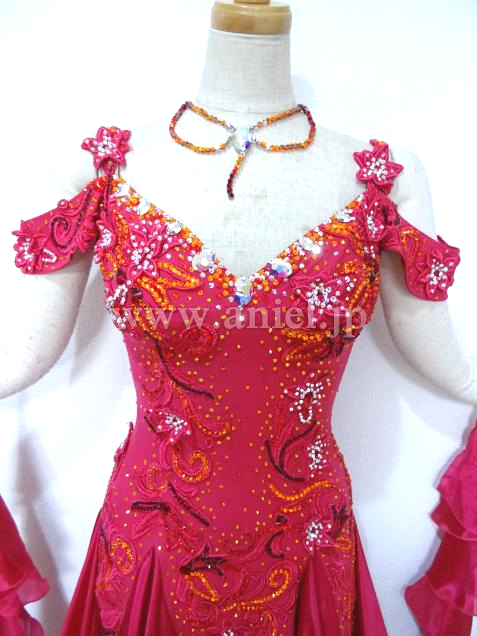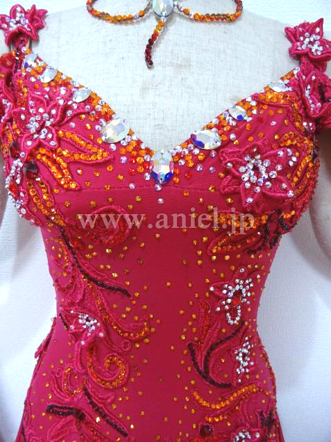 赤い花のモチーフがスカートの方までつながっています。