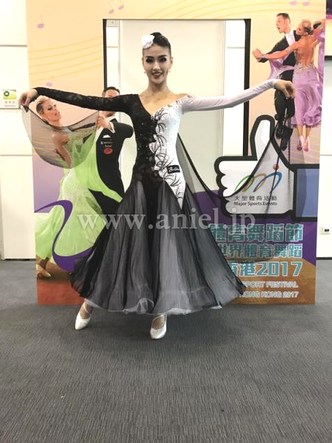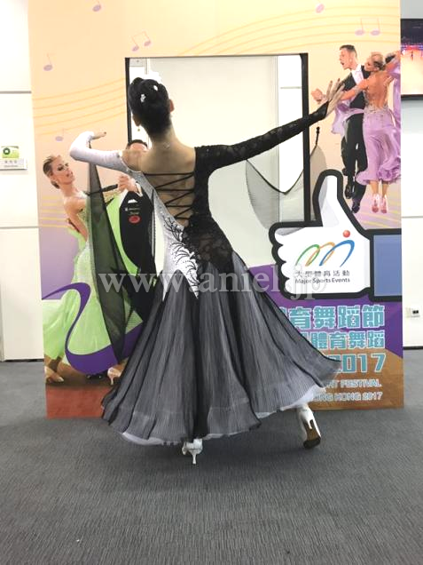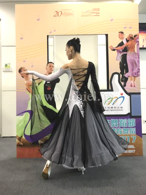 黒と白のフロアで目を引くバイカラーのドレス。