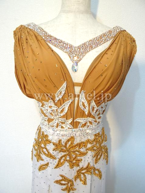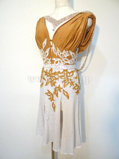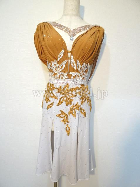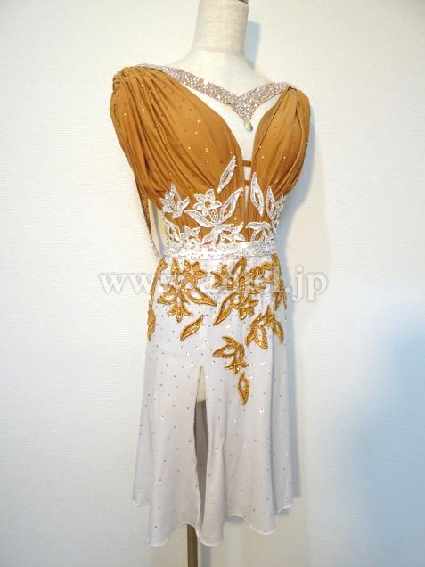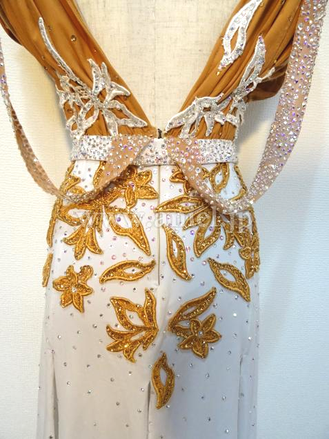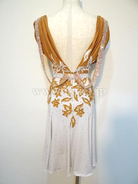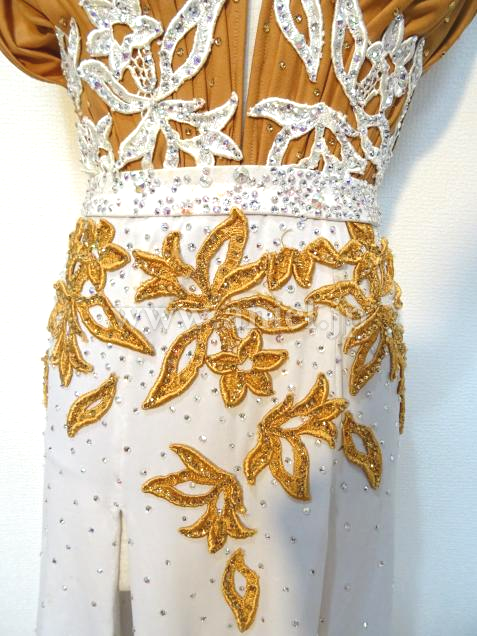 白とベージュの組み合わせで全体的に上品なデザインで、着心地も軽く踊りやすいドレスです。