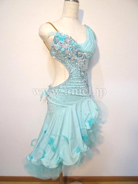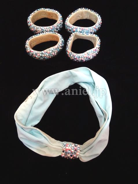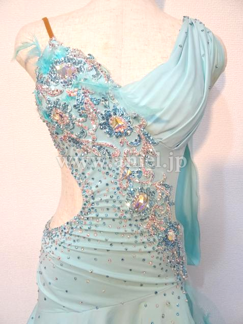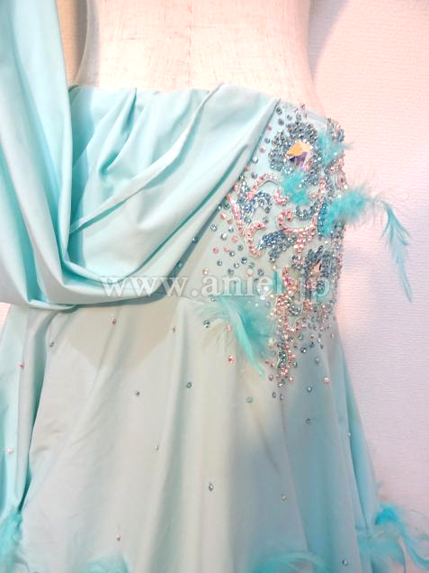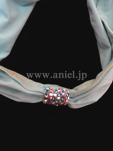 ボディには斜めにモチーフレース、たくさんのスワロフスキーストーンが装飾されています。