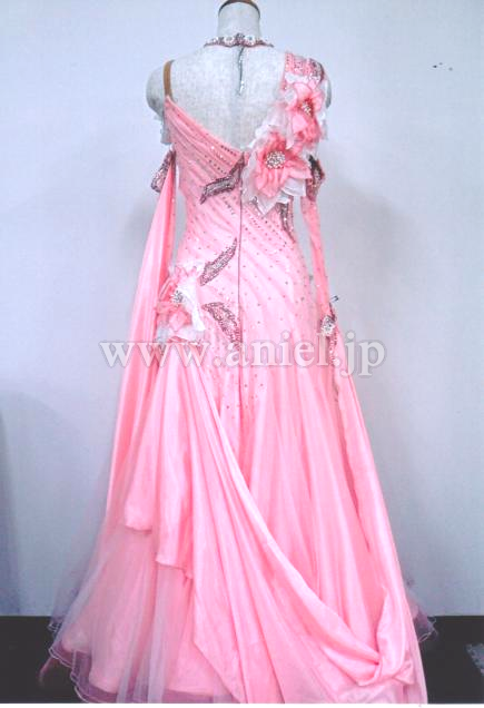 立体モチーフのお花とサテンシフォンのスカートの上に張ってあるチュールがポイントです。