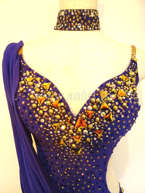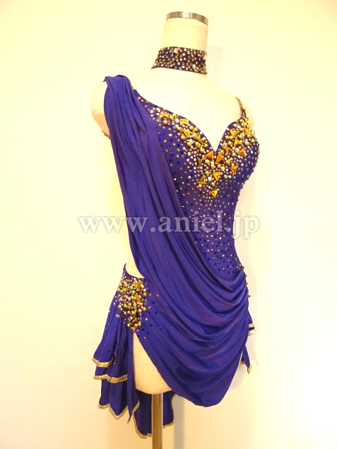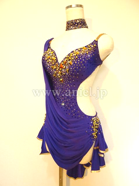 紫とゴールドの組み合わせが上品かつゴージャスなドレスです。
