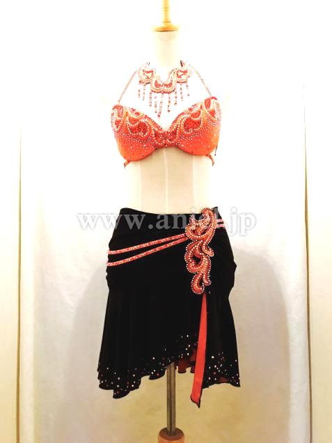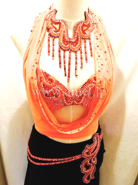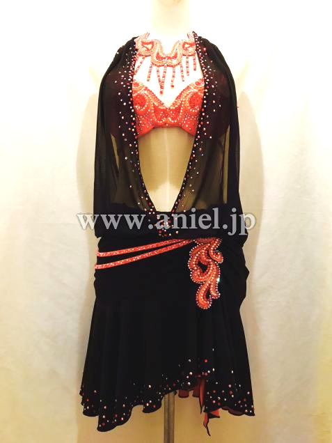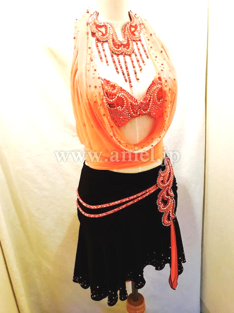 可愛く目立つネオンオレンジを黒が引締め、とてもエキゾチックで大人可愛いドレスです。