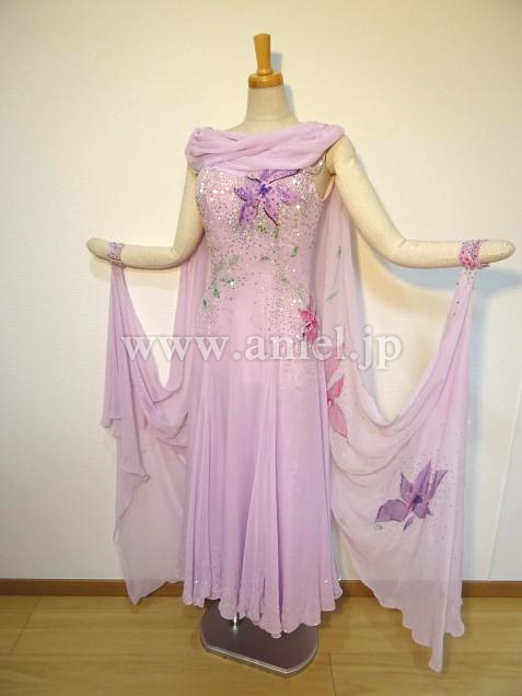 フロートやボディに施された花の絵柄が印象的なドレスです。