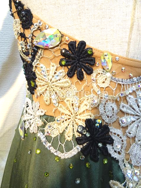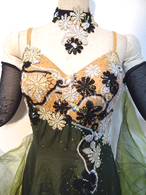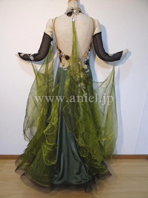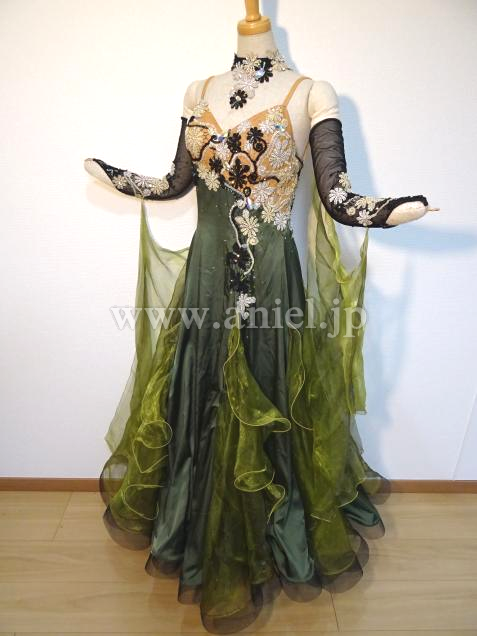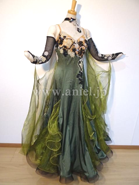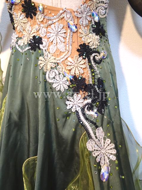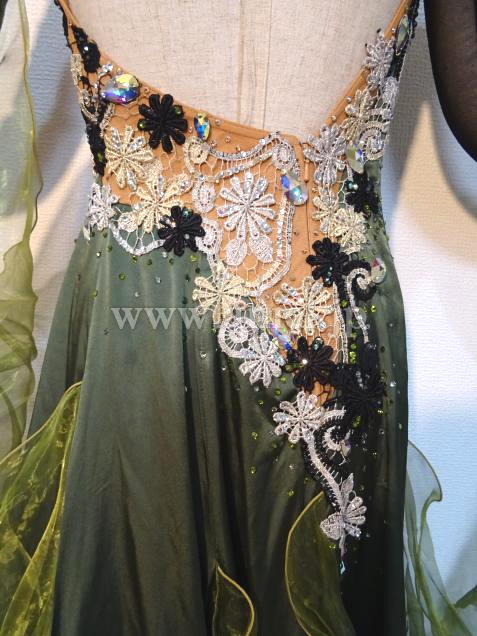 チャコット製作、大人っぽいモスグリーンカラーのドレスです。