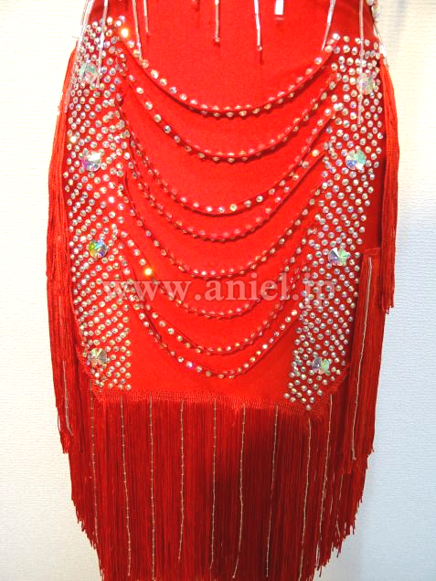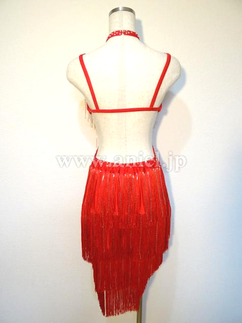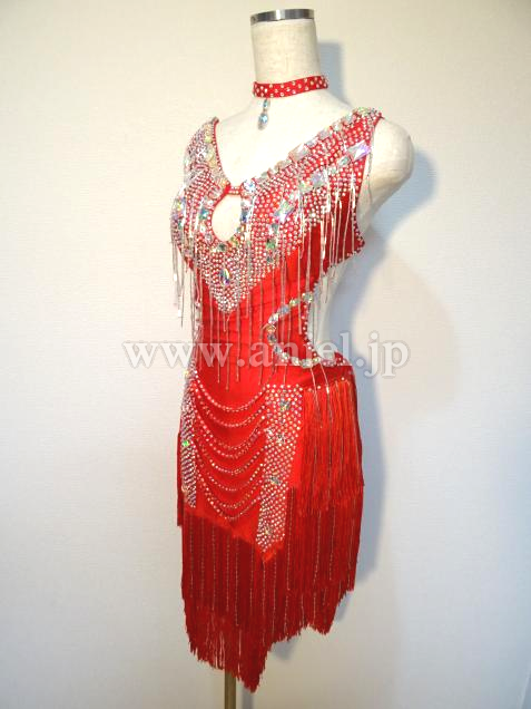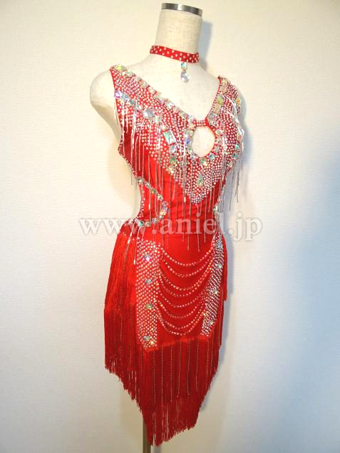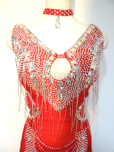 胸元にストーンとビーズフリンジを使用し、華やかに装飾されたドレス。