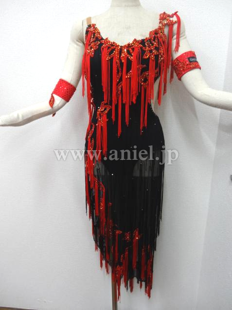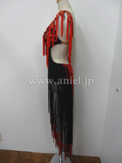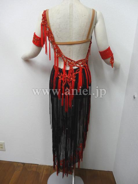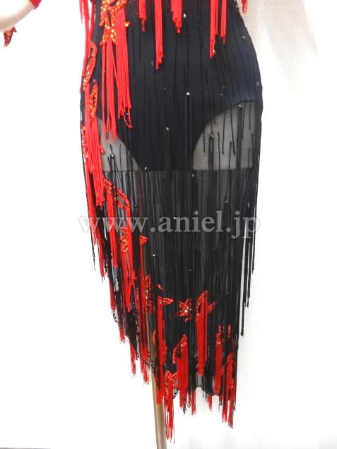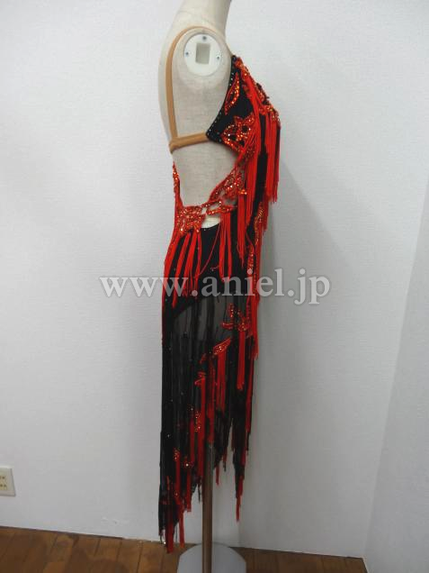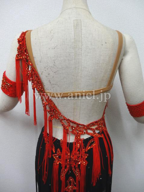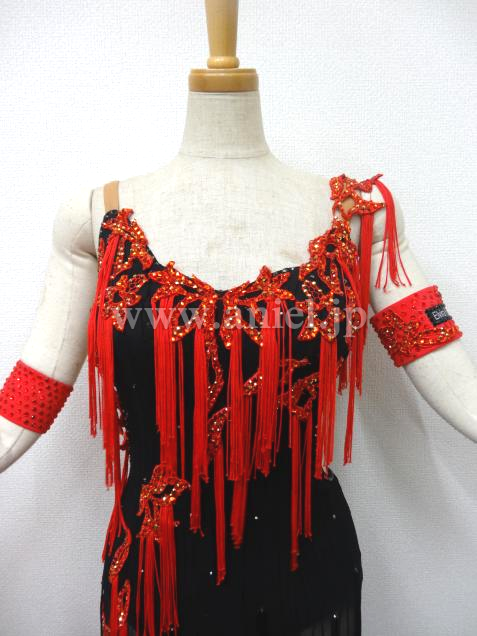 黒&赤のフリンジと赤のモチーフにファイヤーオレンジのストーンが付いています。