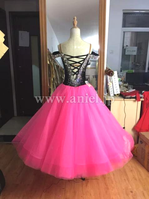 オフショルダーと背中の編み上げがバレエの衣装のようなイメージ。