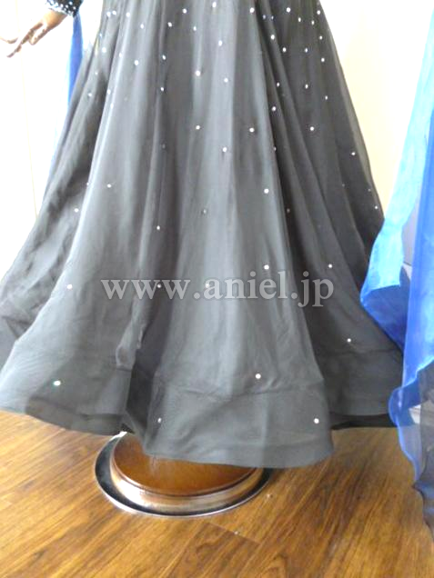 スカートはシフォン その上に石を散りばめてます。