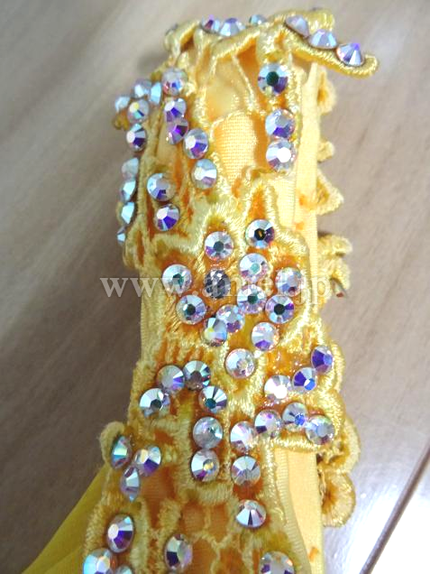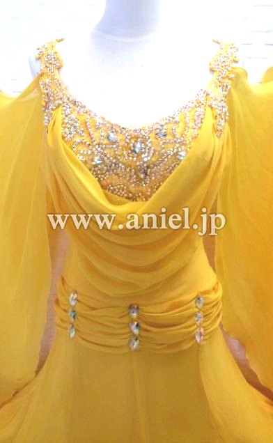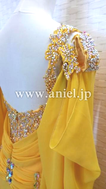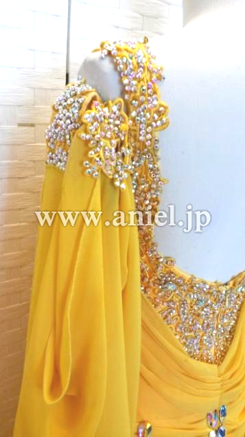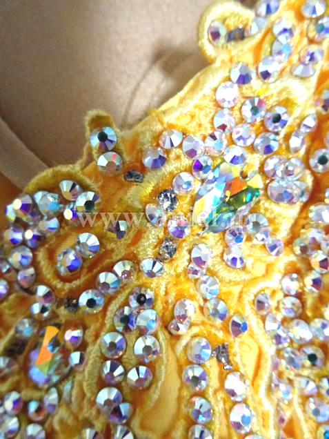 ボディや肩口にあしらわれたモチーフレースにびっしりとスワロフスキーストーンが貼られとても豪華です。露出が控えめなのであまり肌を出したくない方にもおすすめです。