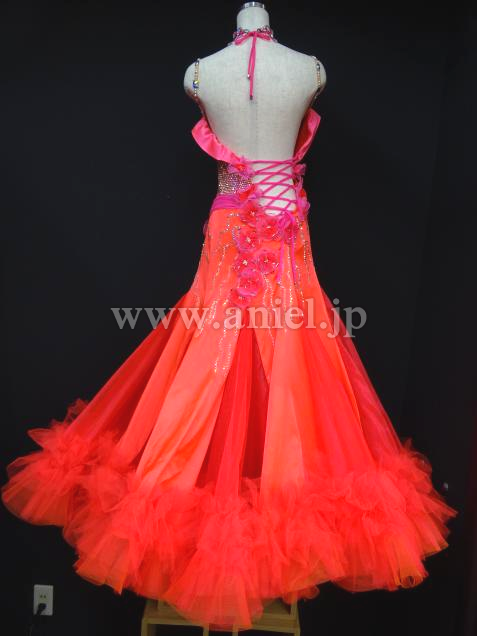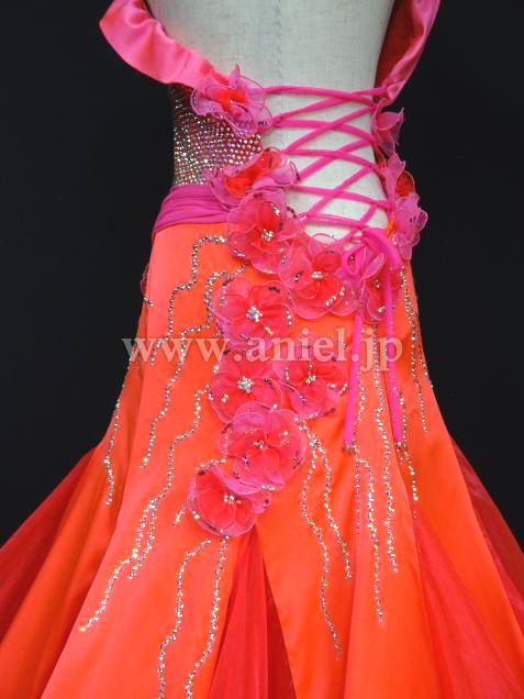 背中は紐で編み上げるタイプで、サイズ対応幅があります。