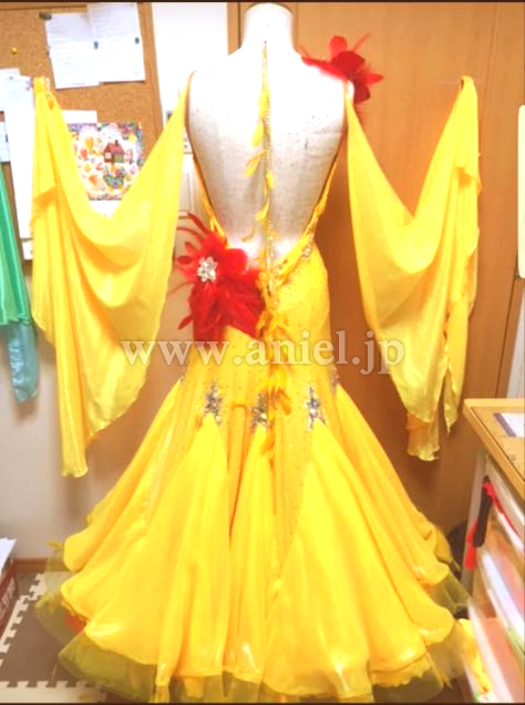 赤い飾りは舞台での写真のものから、昨年ドレスルームにて赤い羽根に豪華にリフォームしました。