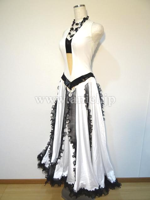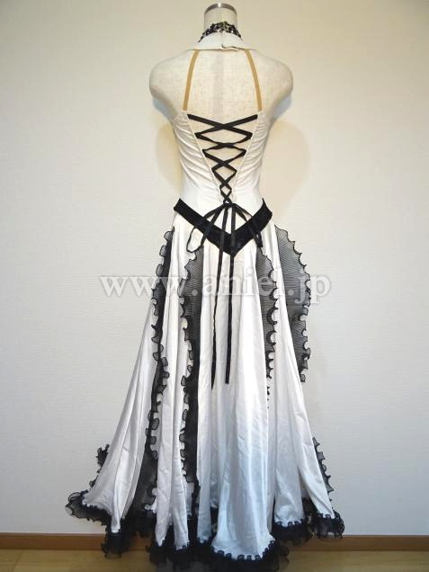 シンプルながら、スカートの黒フリルが印象的なドレス。