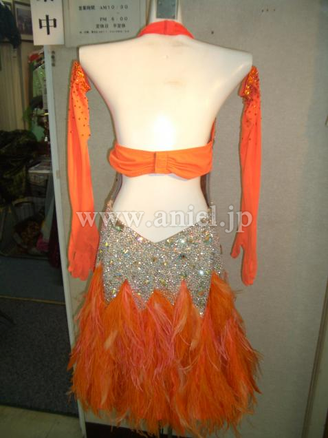 エスパンデザインのヤナギダ製のドレス。デモ・競技にゴージャスでフェザースカートが良く踊ります。