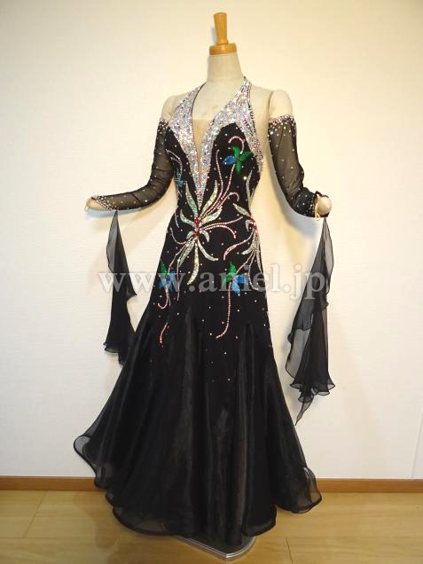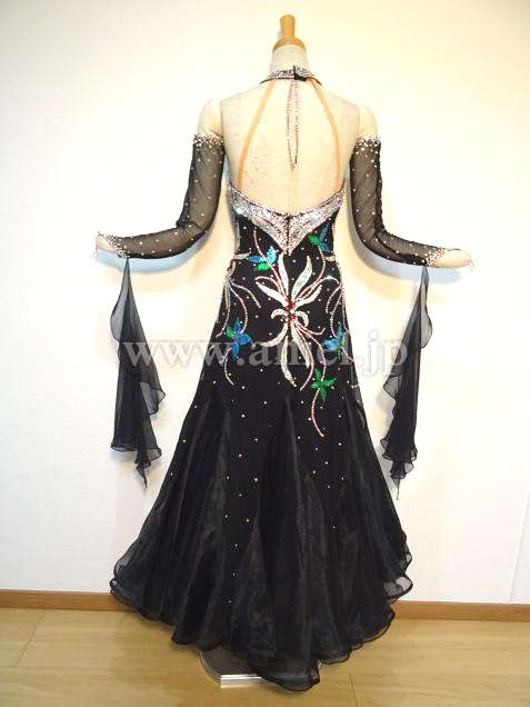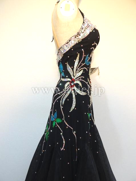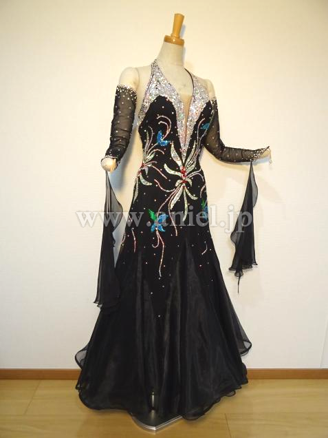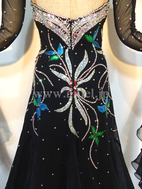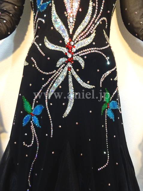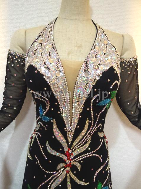 ブラックベースに、ストーンで華やかな模様が描かれたドレス。