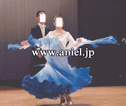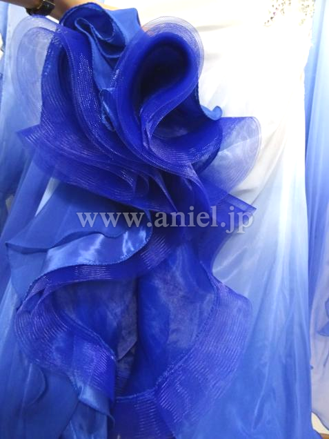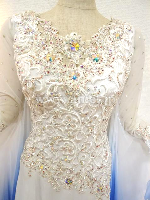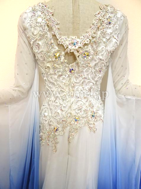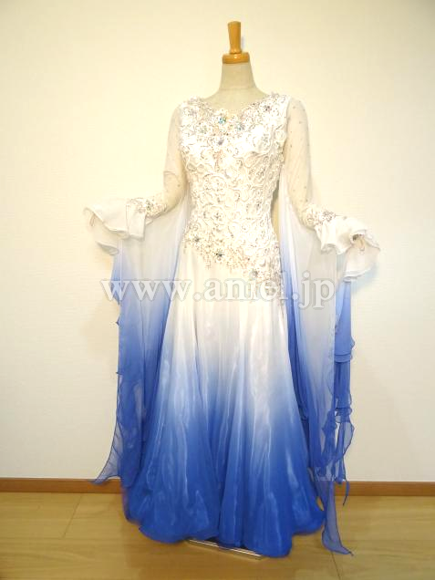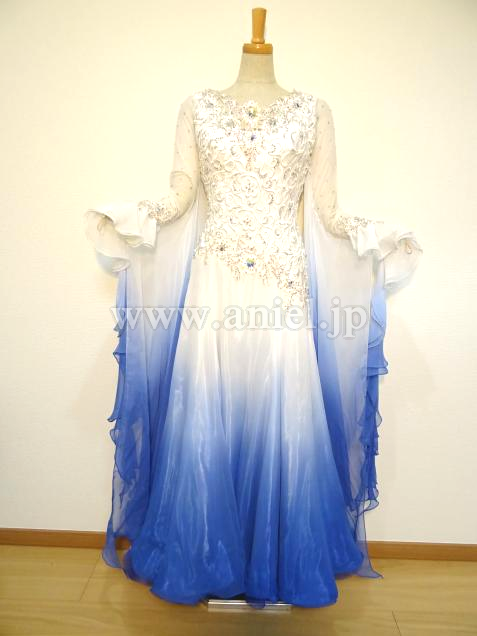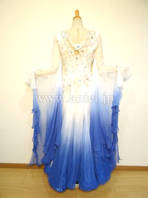 白からブルーへ流れるようなグラデーションのドレス。