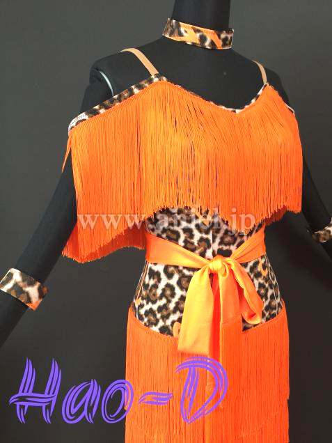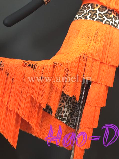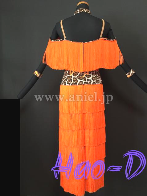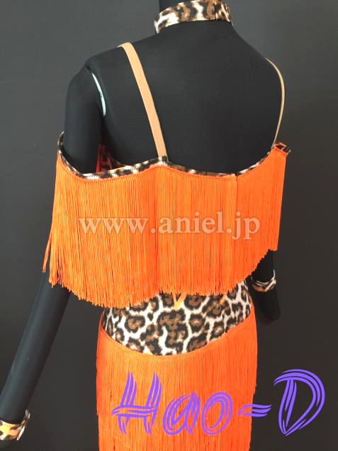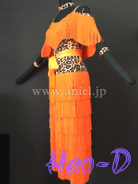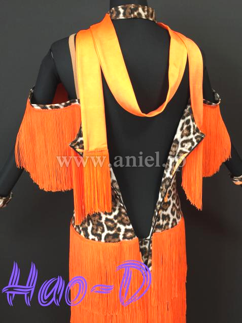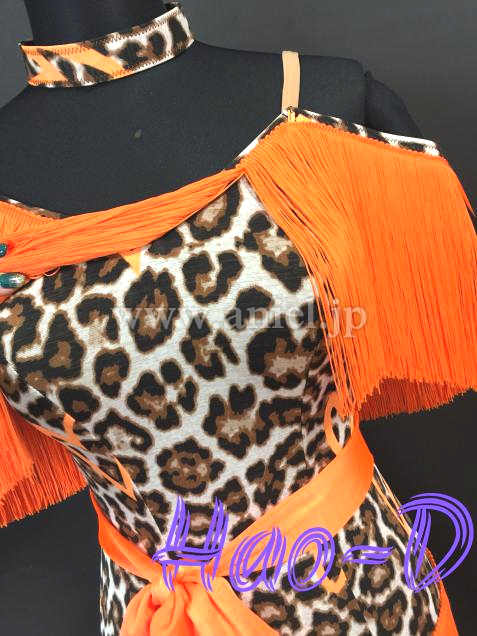 鮮やかなオレンジ色と豹柄を合わせたラテンドレス