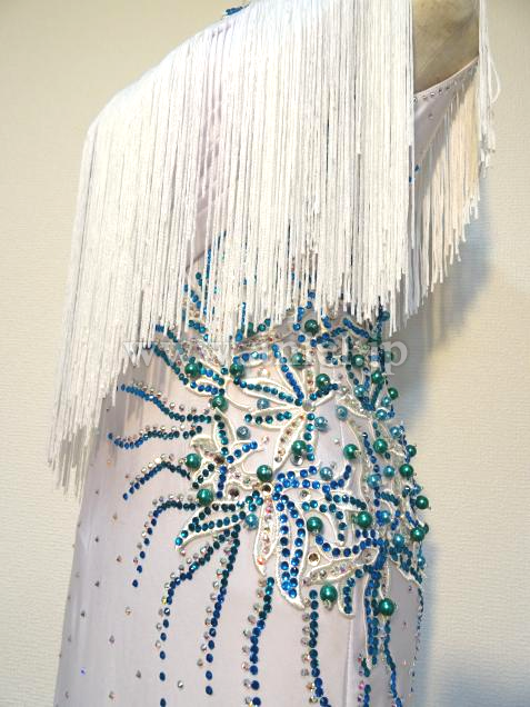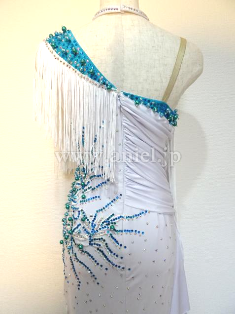 ジェードカラーの差し色が映える美しい白のドレスです。