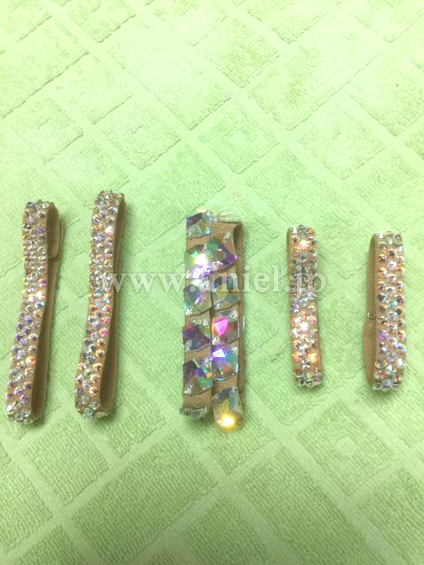 スワロスキーストーンをMIXして装飾されています。バングルが3組付いています。