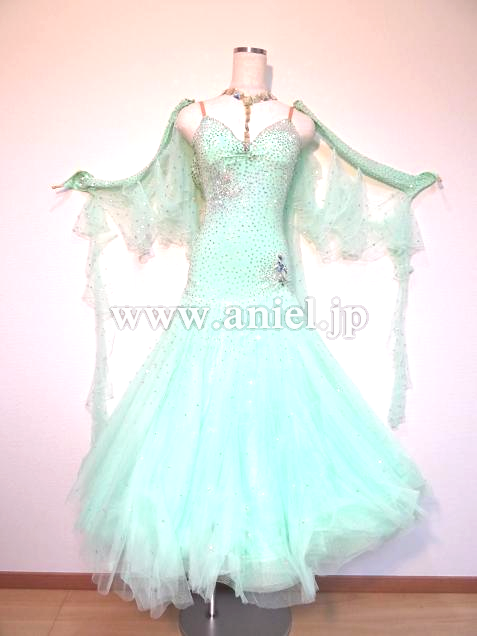 美しいペパーミントカラーのドレス。