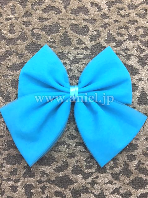 マネキン写真にある大きなリボンは現在外れている状態です。ご自身で簡単に縫いつけ変えることが可能です。