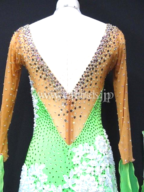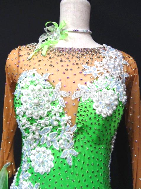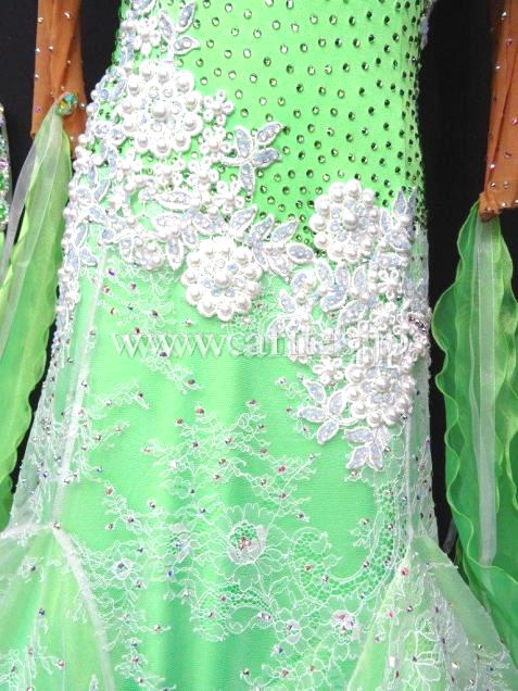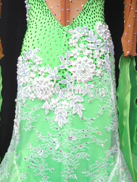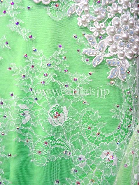 スカートには、一番上に白のレースを使用しており、そこから透けて見える黄緑が美しいです。
