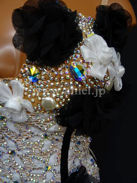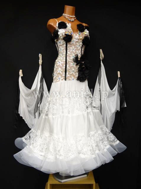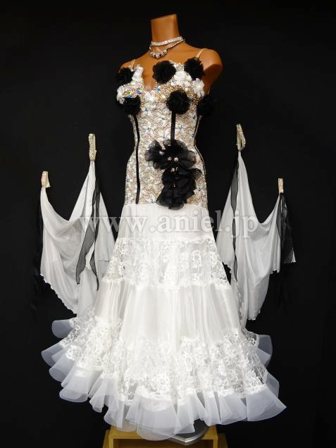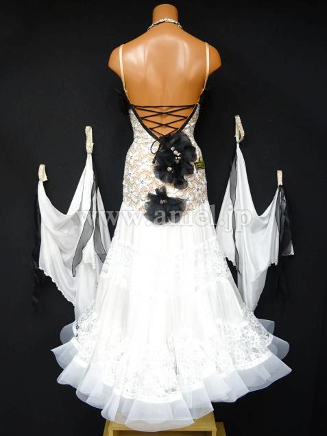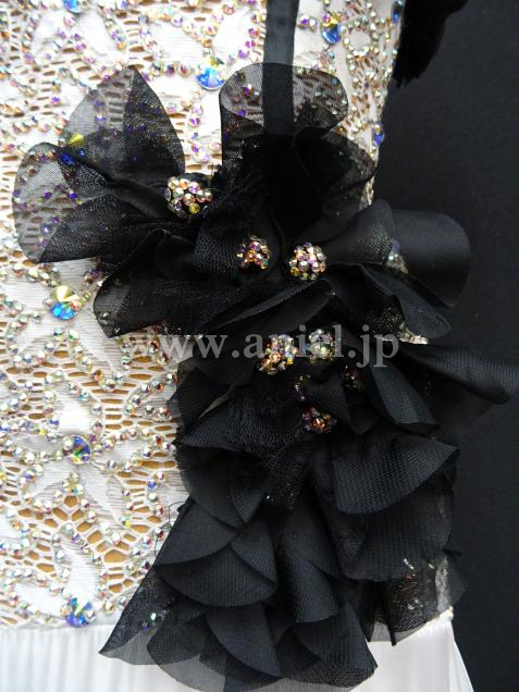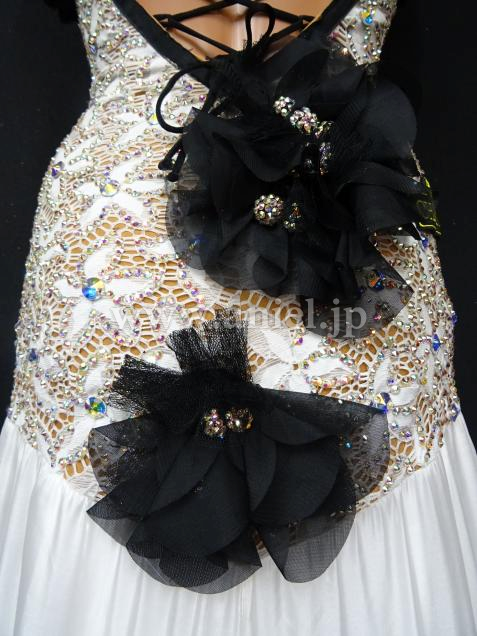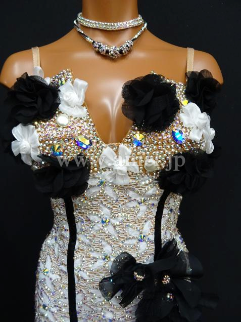 ブラックの立体的な花のモチーフが華やかなドレス。
