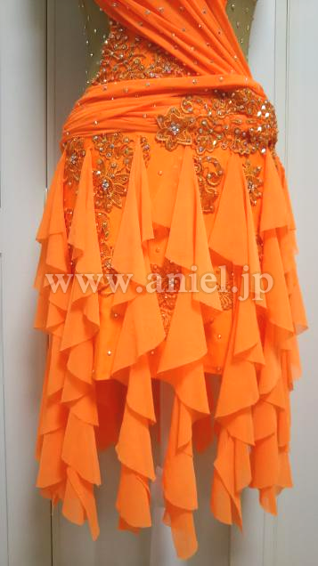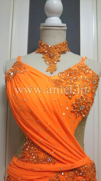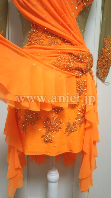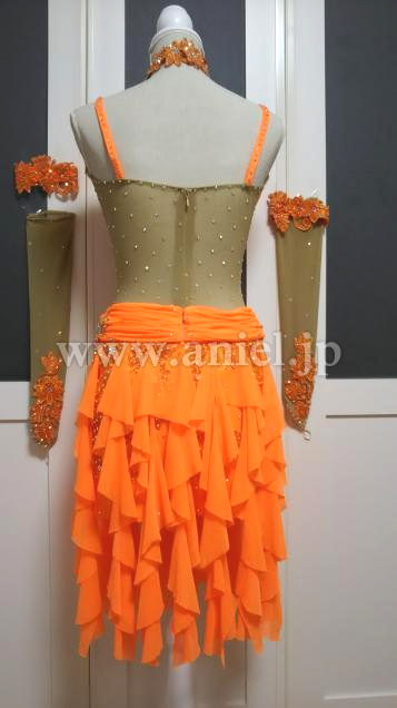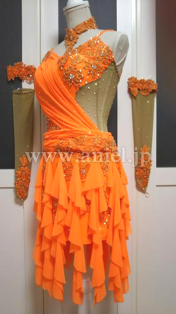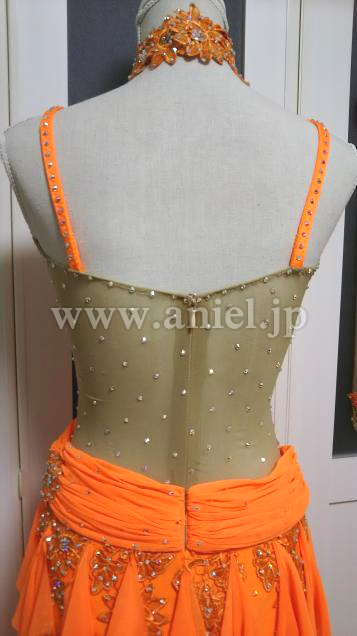 ウエストから背中にかけてベージュの生地を張っていますので露出をおさえられます。長めのグローブ付き。ウエストの細く見えるデザインです。