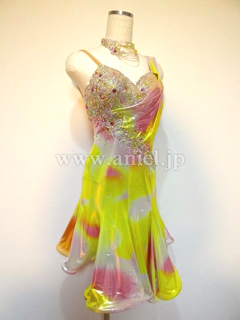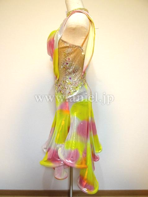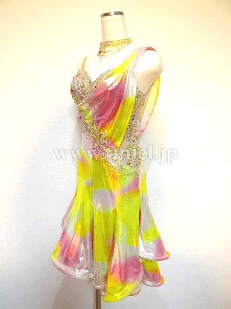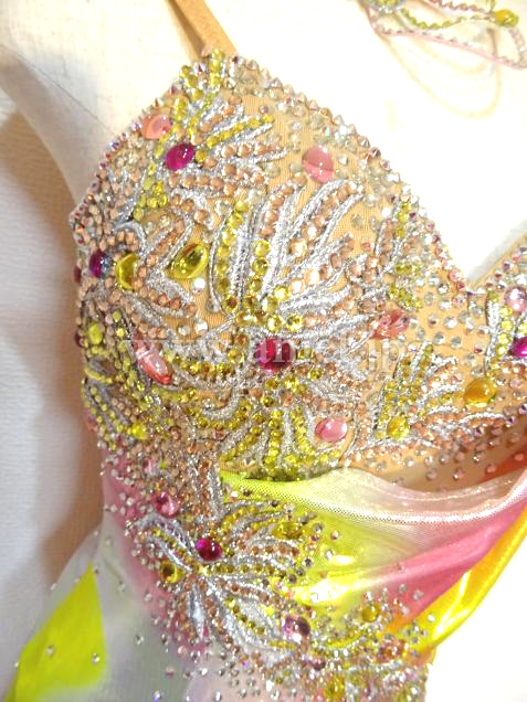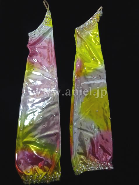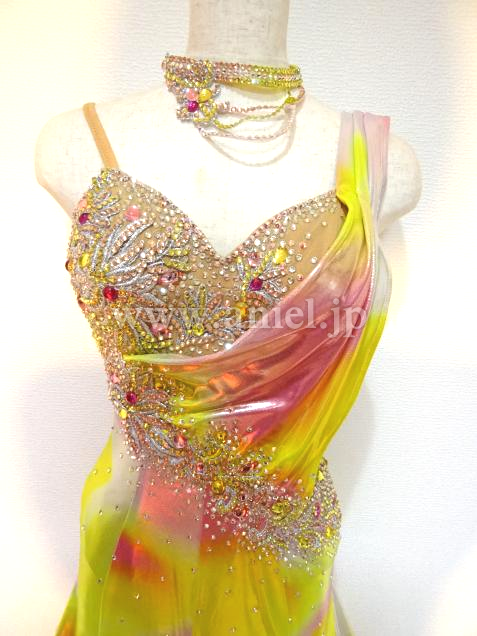 胸元は、スキンカラーベースにカラフルなストーンを使用。ロンググローブ付き。