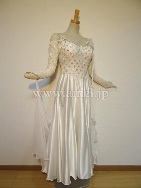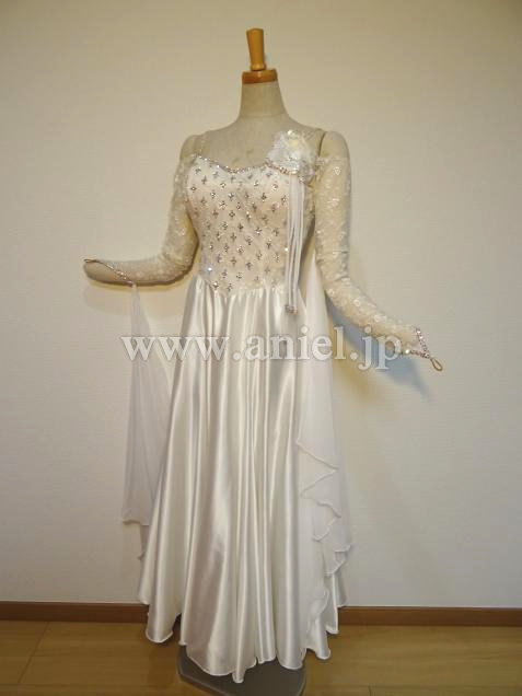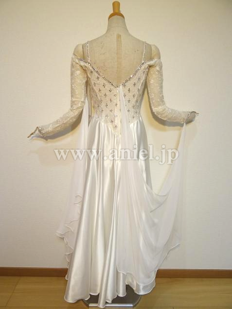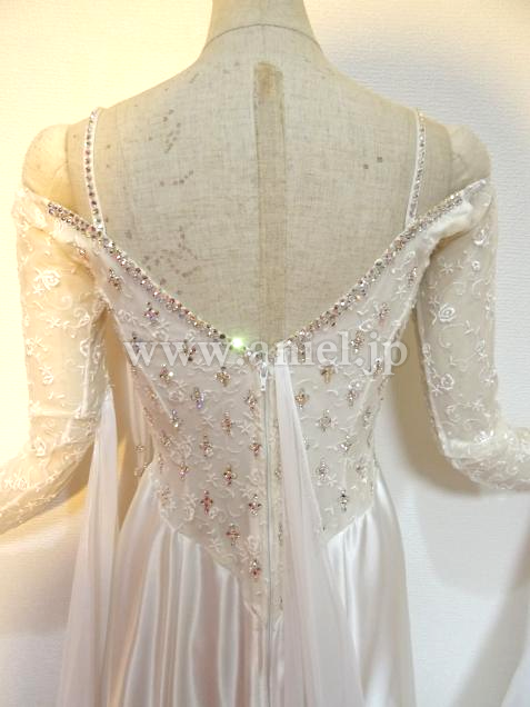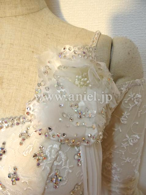 シンプルながら、スワロフスキーストーンとレースを使用し、上品なドレス。