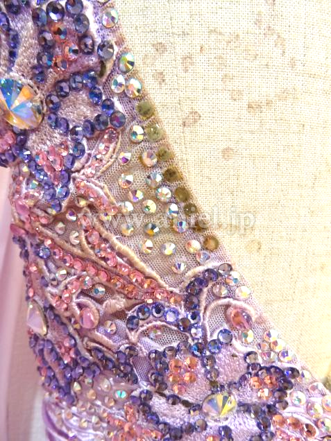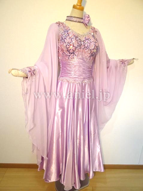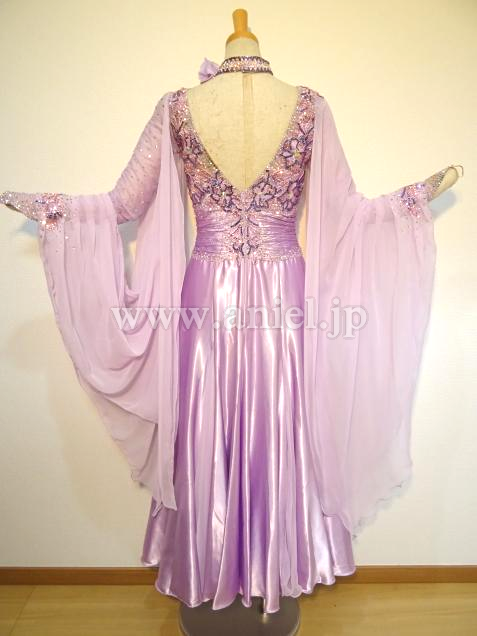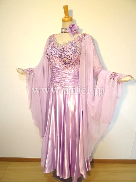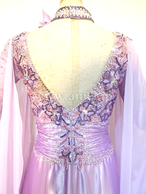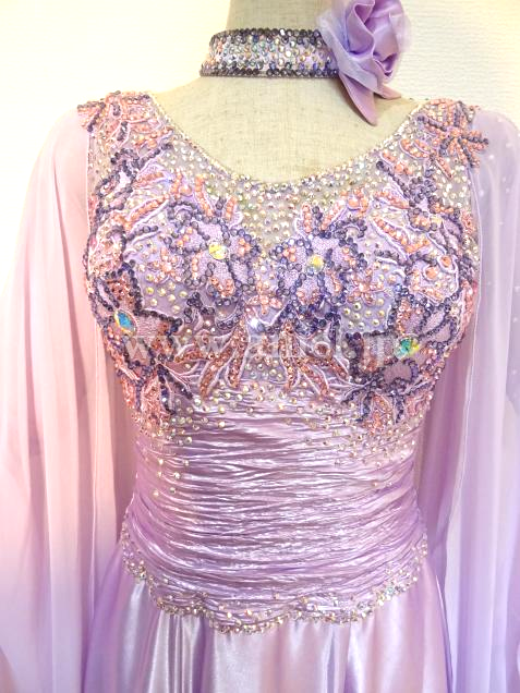 露出の少ないラベンダーカラーのドレス。