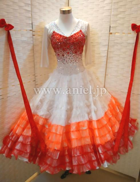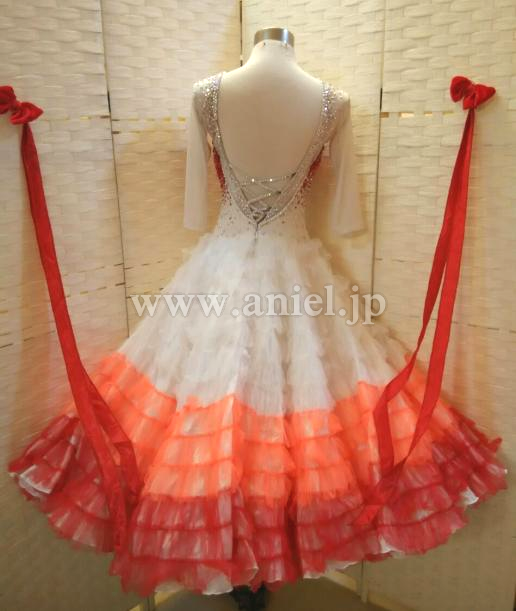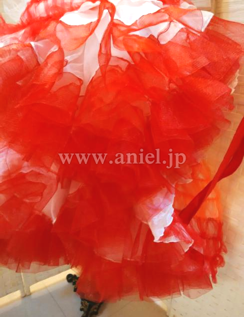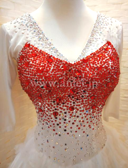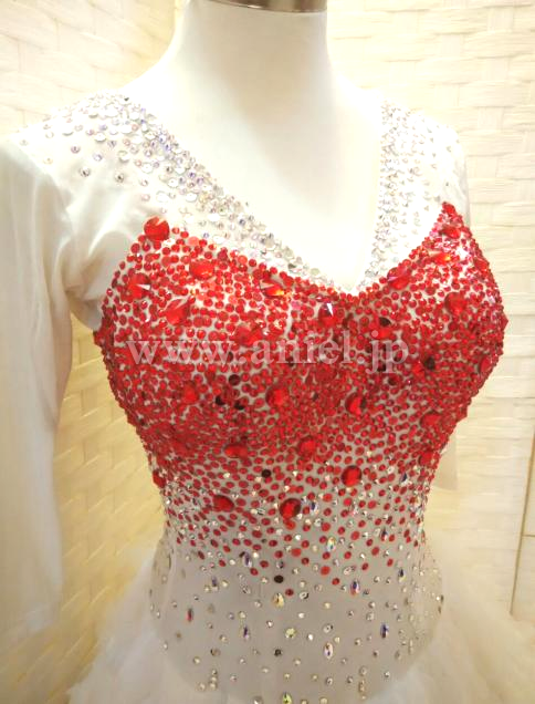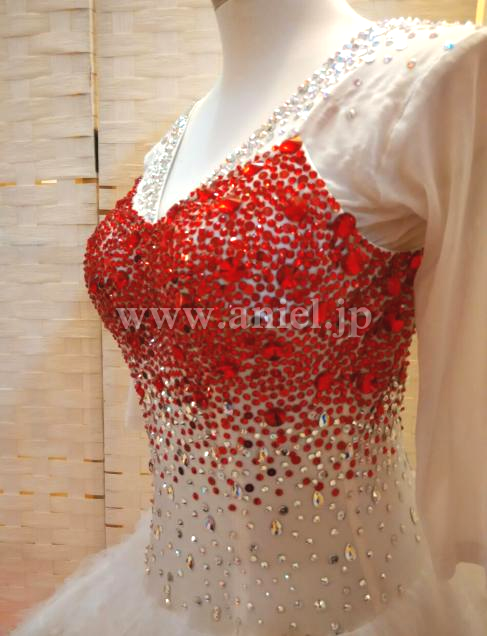 胸元や背中のラインにはスワロフスキーストーンがびっしりと貼られ非常に豪華です。