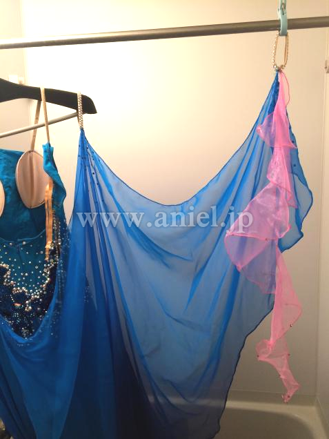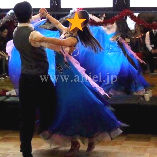 ボリュームのある3枚スカートです。1枚目と3枚目はホースヘア付きです。回ると差し色のピンクがよく見えます。