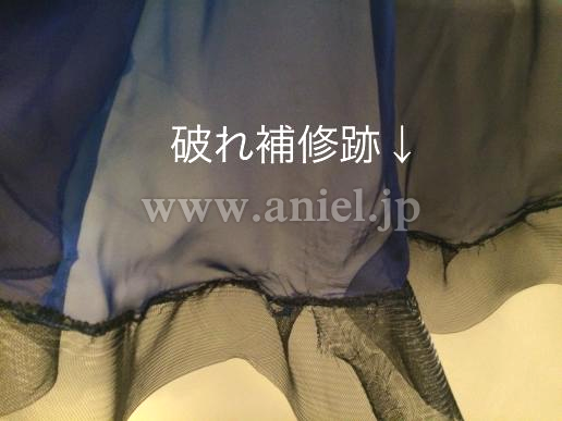 スカートを引っ掛けてしまいホースヘアとの間が裂けたことがあり、手縫いで補修してあります(写真7枚目)。目立たないと思います。