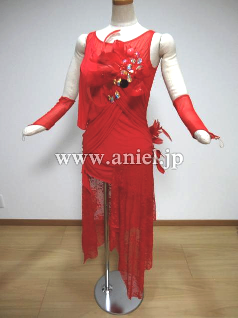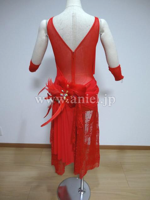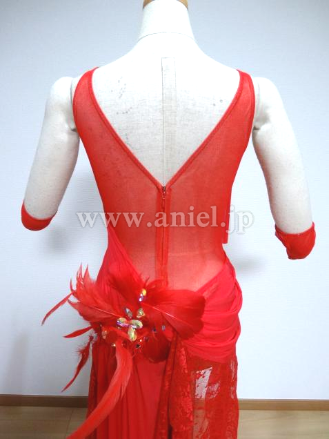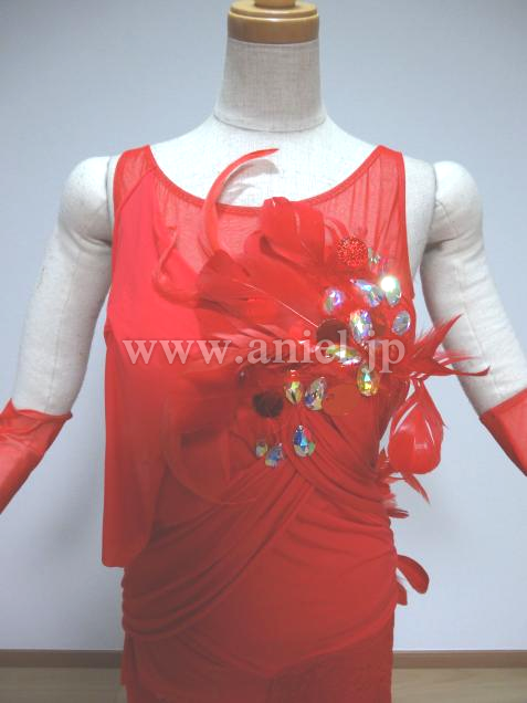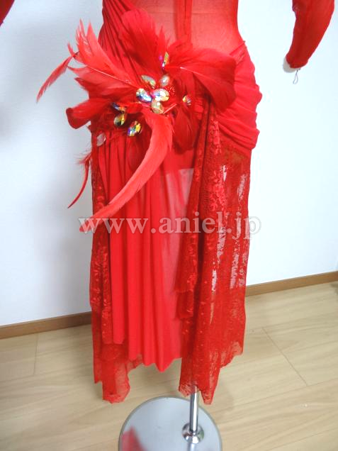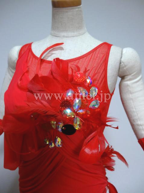 大きな羽根と、大きな石が組み合わさった、モチーフが胸元とヒップに付いています。