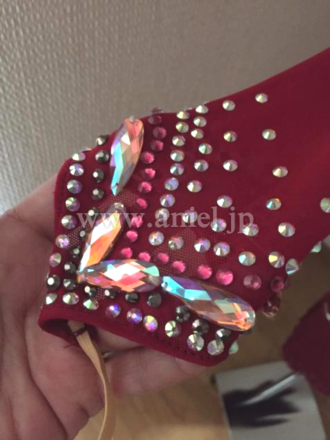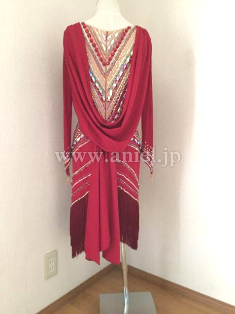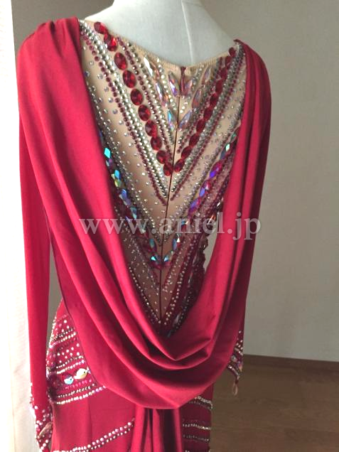露出は控えめですが、踊ると背中のドレープが揺れ、印象的なドレス。