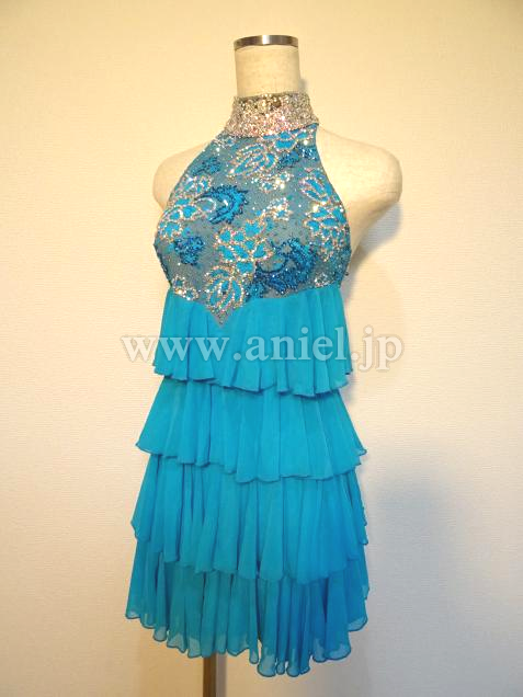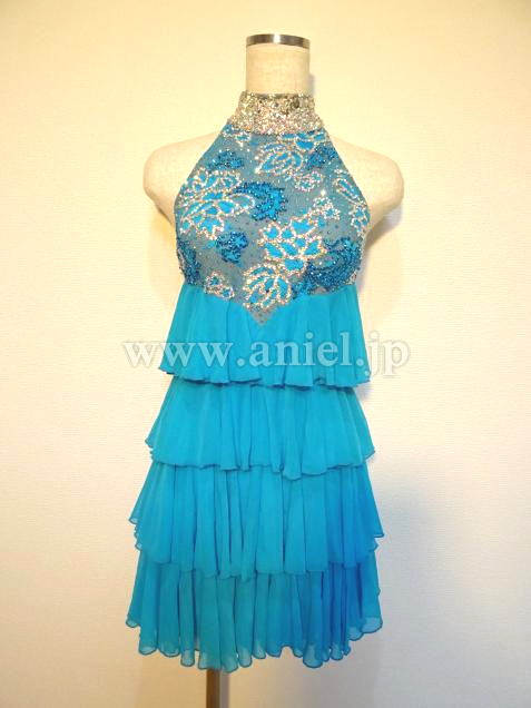 ティアードスカートがよく動くドレス。ミニ丈で着用です。