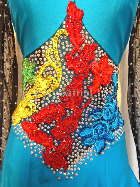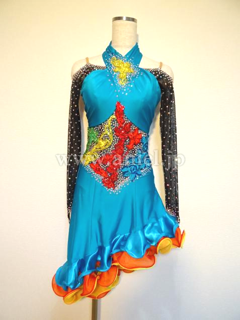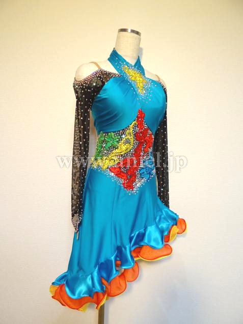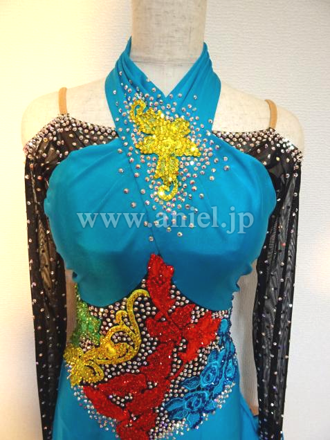 発色の良いブルーに、カラフルなモチーフを使用しています。