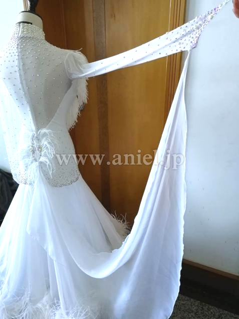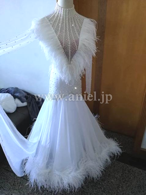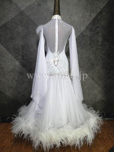 オーストリッチファーを胸元、スカートの裾に使い、とても華やかです。