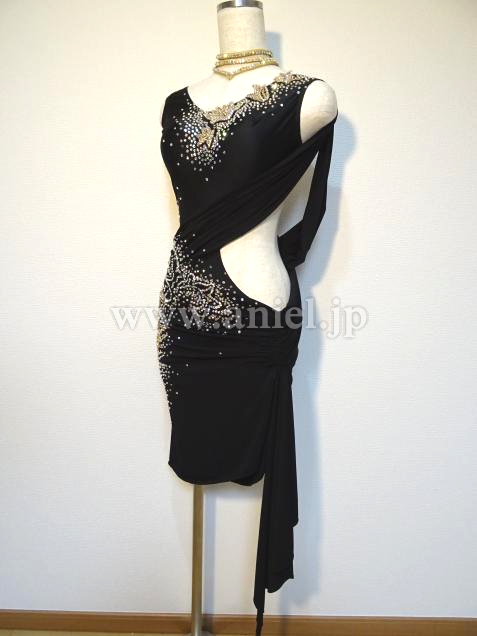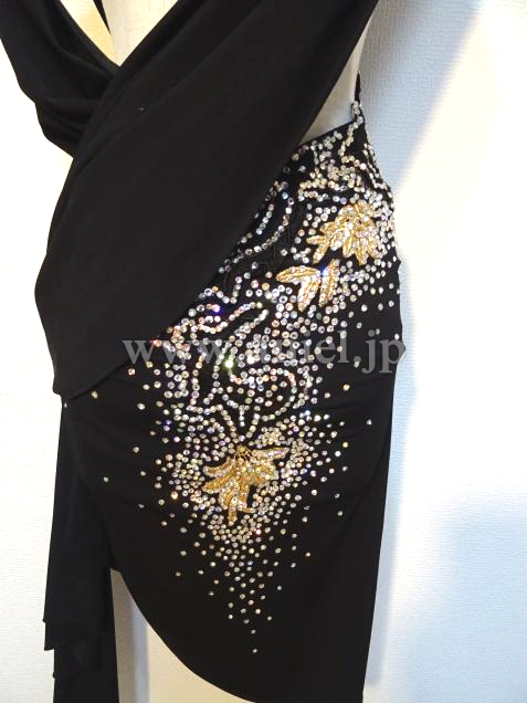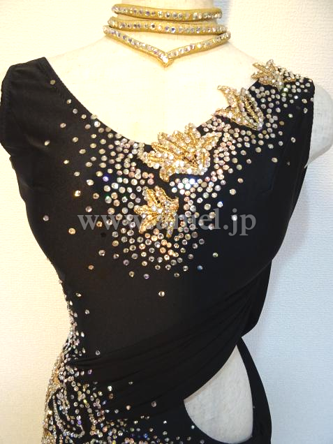 黒にゴールドの装飾がスタイリッシュなドレスです。