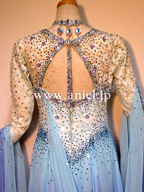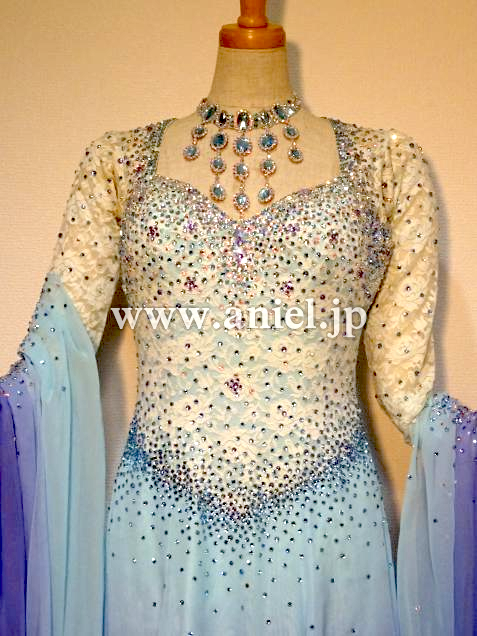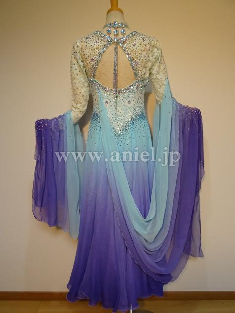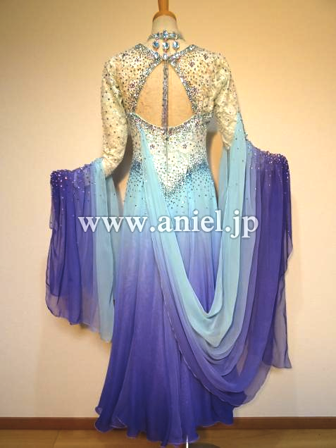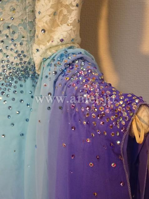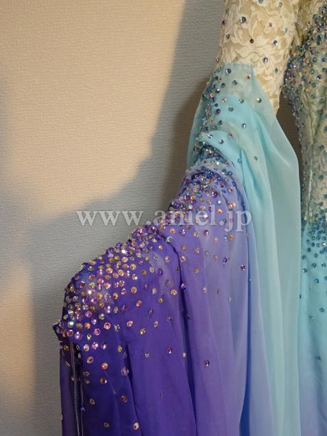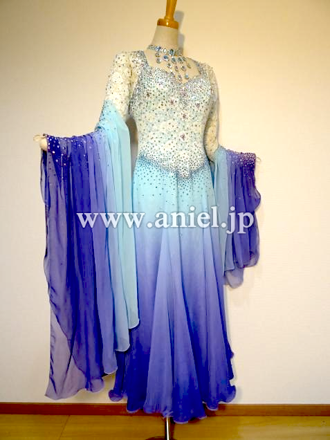 水色から深い青へのグラデーション生地が美しいドレスです。
